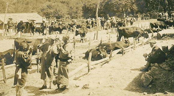 明治時代以降、神仏分離によって大山寺の手を離れたあとも、牛馬市は地域の経済を支え、年間1万2千頭の牛馬が取引される国内最大の牛馬市に発展。当時のお金にして約200万円の牛を1頭持つことが一人前の証となる時代でした。それを現代に置き換えるなら、牛馬はさながら自動車でしょうか。