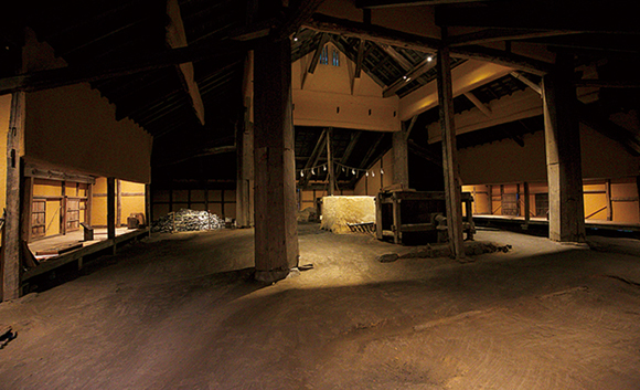 たたらに従事した人々の集落「菅谷たたら山内(さんない)」に残る製鉄工場「菅谷高殿」(国の重要有形民俗文化財)。全国で唯一現存する堂々とした建物は、1751年から170年間操業した当時の姿を復元。内部の様子まで見学することができます。