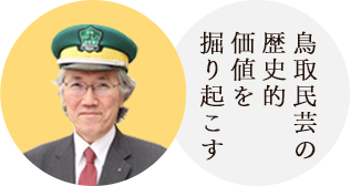 平成元年に鳥取民藝協会に入会した木谷隊員は、この協会の創設者である「吉田璋也(1898-1972)」とは、いったいどんな人物だったのか知りたくなった。けれど当時、資料はほとんど整理されていない。まず一番最初に取り掛かったのが、璋也の年譜をまとめる作業だった。「璋也は、民藝のなかでも新作民藝という点が特徴的。伝統的な手仕事をする職人たちを指導して、時代にマッチした新しいものづくりをプロデュースしたのです」