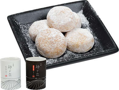 昔ながらの和菓子を守りつつ、新しさも取り入れてきた鳥取市の「宝月堂」。鳥取を代表するお土産を作ろうと「砂の丘」が誕生しました。鳥取砂丘の砂をイメージしたたっぷりのパウダーと発酵バターがほのかに香る添加物不使用のマーガリンを使った和風クッキーです。和三盆を使用したものと鳥取市鹿野町産の品質の良い生姜を使用した2種類。上品で控えめな甘さが特徴です。昼と夜の鳥取砂丘を描いたパッケージもセンス抜群です。