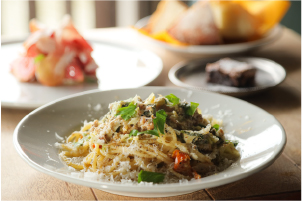 木綿街道の真ん中に位置する、築100年以上の古民家を活用して生まれたイタリアンレストラン。若いシェフがフレッシュな地元食材でつくるオーガニックイタリアンの評判は高く、地元はもちろん県外からも足を運ぶお客さんで満席になるお店。