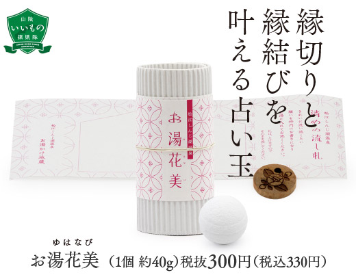 良縁に結ばれるには、心身ともきれいになってから。まず縁を切りたいことを紙札に書き、お湯に流してから使います。お湯に入れるとシュワッと溶け、泡の中から浮かぶ木札に描かれた5種類の花柄で占います。松江しんじ湖温泉のオリジナル花占いで良縁を叶えませんか。