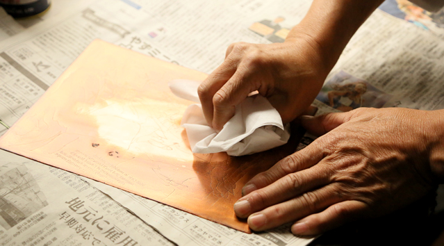 徳持隊員の作品は、銅版画しかり、そして鉄筋彫刻しかり、日本固有の「線」のアートだ。「西洋の塊の彫刻に対して、日本固有の線だけで立体的に表現できないものか」と挑戦が続いている。