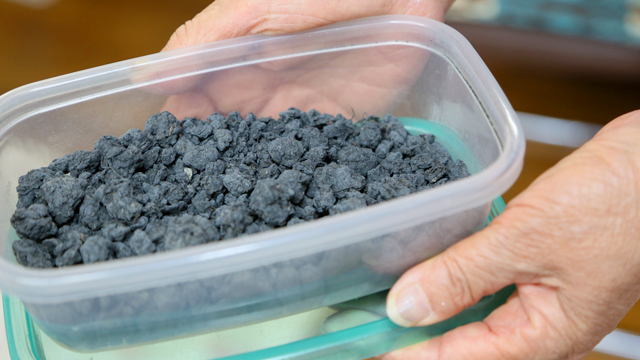 「空気に触れると色が変わるので、液から出さないで、まず3分間。その後、水にさらします。これを繰り返し行っていきます」と、ちずぶるーの矢部恵美子さん。