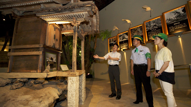 スロープを下りた第2展示室で、堂々と鎮座している祠(ほこら)に注目。