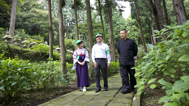 「お墓の前に鳥居があるんですね」と木内キャプテン。